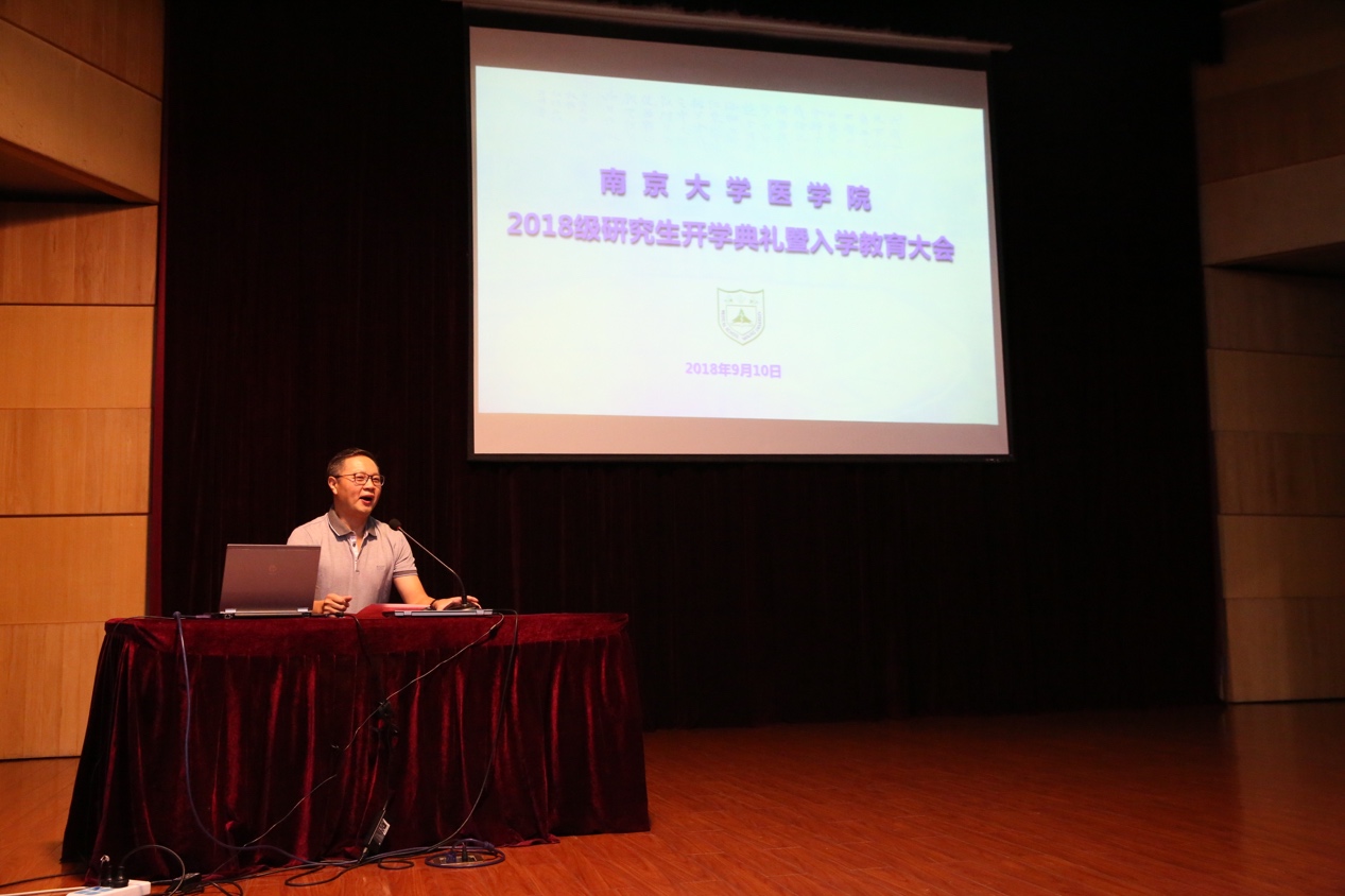 韦德1946体育官方入口经理张峻峰,党委书记韩晓冬,副经理蒋青、李朝军、沈苏南,研究生院李松,附属医院相关负责人周玉皆、任冰、谢思静,韦德1946体育官方入口博士生导师、附属金陵医院神经内科主任刘新峰,韦德1946体育官方入口员工、附属鼓楼医院骨内分泌科主任医师毕艳,韦德1946体育官方入口教师代表以及2018级全体研究生新生参加了开学典礼。典礼由韦德1946体育官方入口党委副书记王阿妮主持。