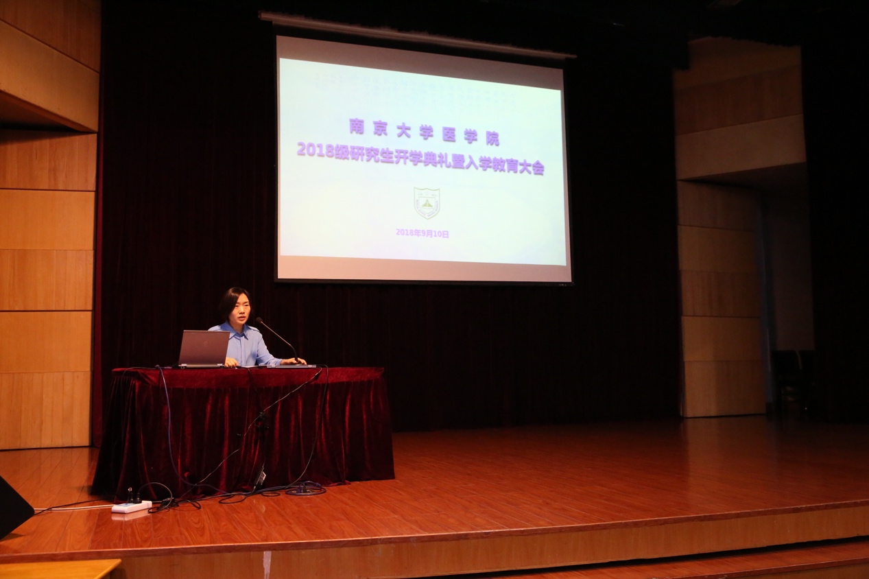 接下来,新生代表2018级博士研究生赵颖同学发言,她表示南大医的印记将敦促大家成为德才兼备、独当一面的人。