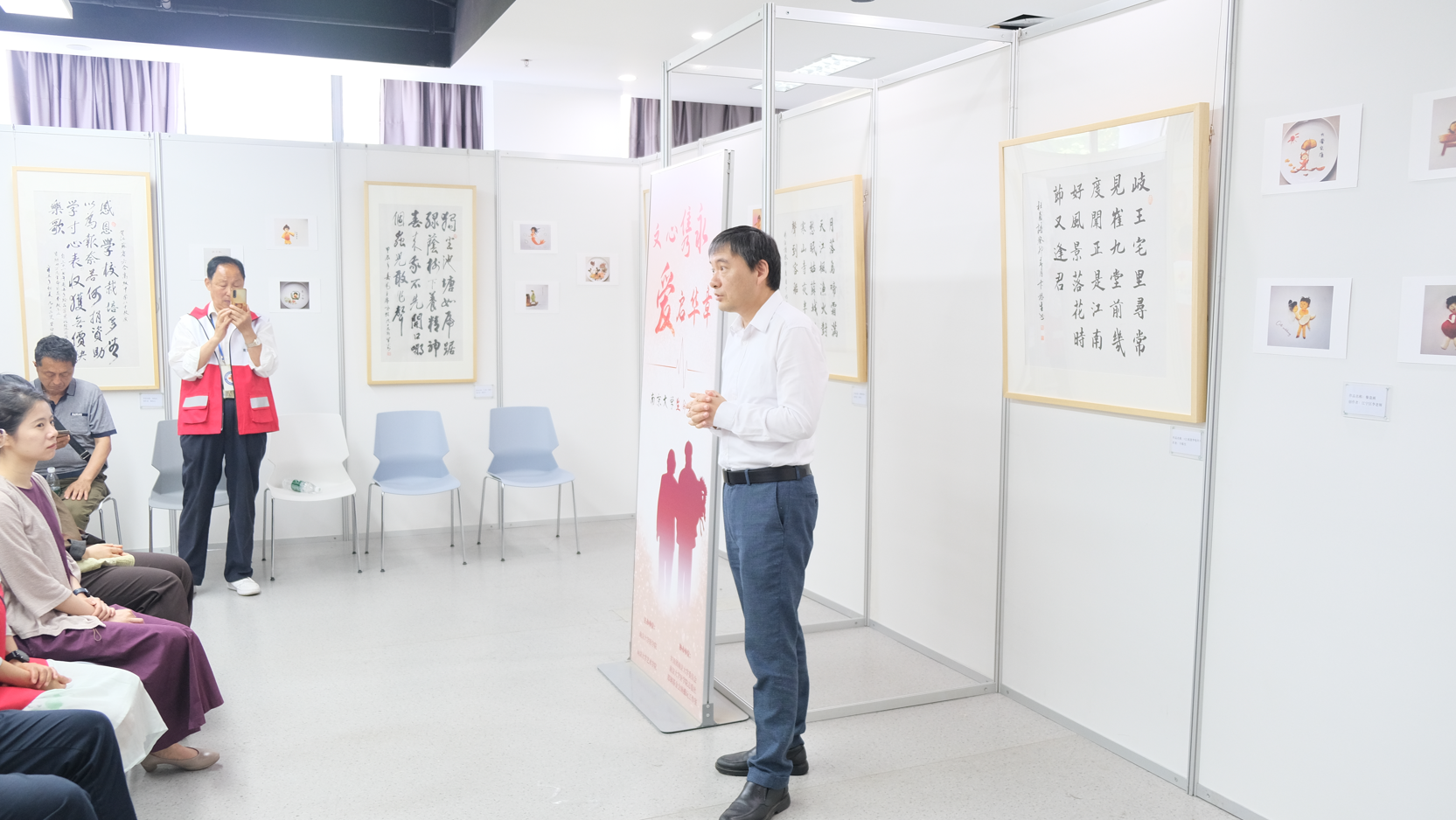 525日,由韦德1946体育官方入口志爱社发起的“文心隽永,爱启华章”:南京老员工命美育展在韦德1946体育官方入口鼓楼校区开幕。本次展览由韦德1946体育官方入口、韦德1946体育官方入口艺术学院和共青团韦德1946体育官方入口委员会共同举办。韦德1946体育官方入口韦德1946体育官方入口党委书记沈苏南,韦德1946体育官方入口艺术学院教授祁林,南京市红十字会捐友协会常务副会长高珊珊,韦德1946体育官方入口团委副书记王维嘉,以及各区捐友代表出席了此次活动。开幕式由韦德1946体育官方入口解剖学教研室主任张露青主持,韦德1946体育官方入口志爱社负责本次展览的全程志愿服务,郑钢基金会南播玩工作室对仪式进行了直播。