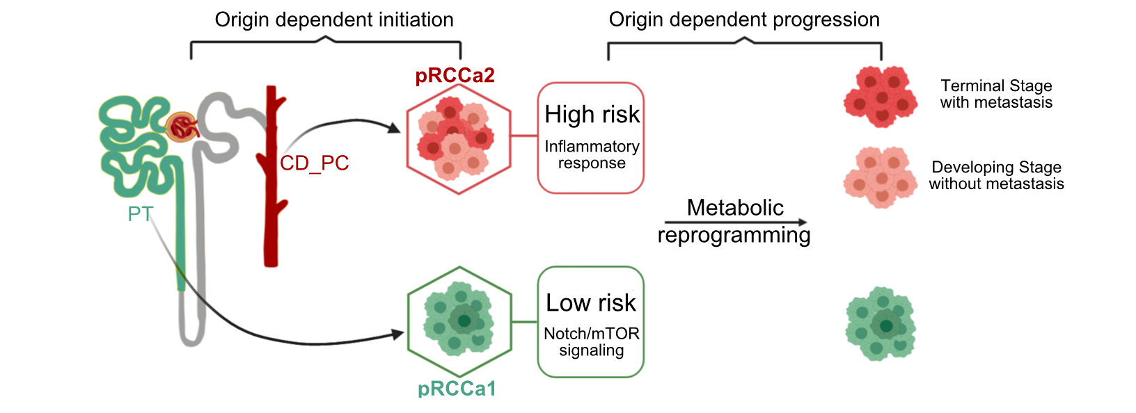 1:肾乳头状癌细胞起源及转变示意图。