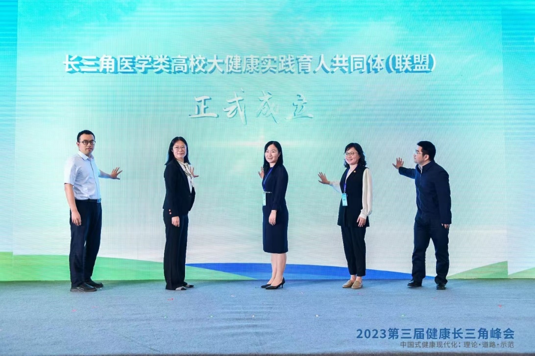 5月20日,在2023第三届健康长三角峰会上,王阿妮代表韦德1946体育官方入口同其他高校代表共同点亮启动开关,“长三角医学类高校大健康实践育人共同体(联盟)”正式成立。