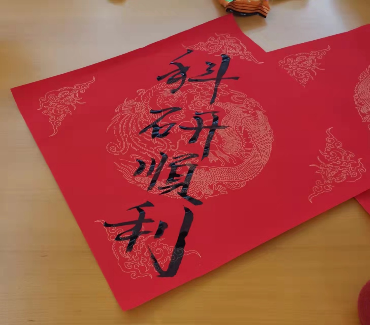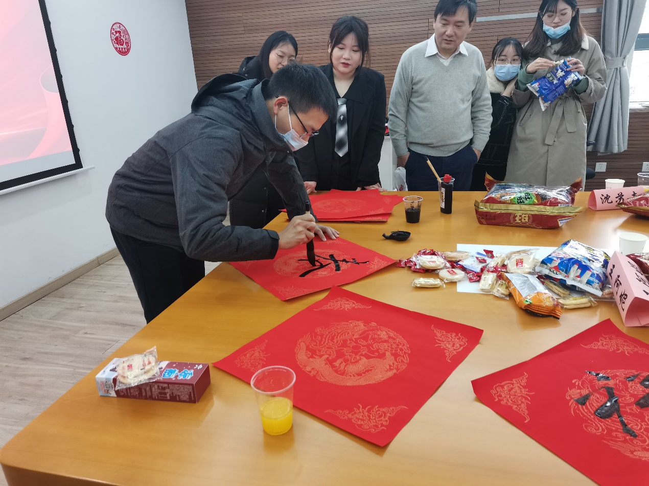 活动准备了纸和墨让大家书写福字,同学都跃跃欲试,上前一试身手,现场气氛其乐融融。