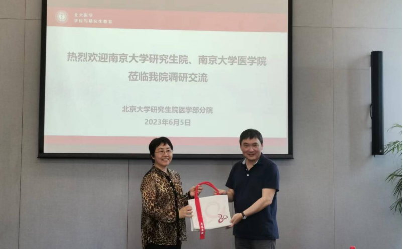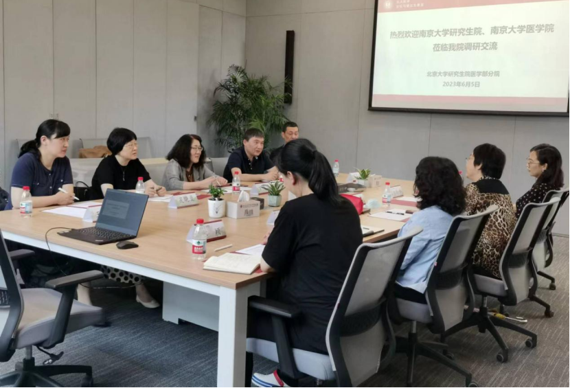 为全面贯彻党的二十大报告关于“坚持教育优先发展,全面提高人才自主培养质量,着力造就拔尖创新人才”的要求,深入开展学习贯彻习近平新时代中国特色社会主义思想主题教育,积极落实韦德1946体育官方入口“奋进行动”方案,6月5日,在韦德1946体育官方入口研究生院副经理卞清和学位办主任吴晓曼的带队下,韦德1946体育官方入口韦德1946体育官方入口党委书记沈苏南、副经理蒋青、副经理王婷婷及附属鼓楼医院副经理周敏、附属金陵医院教学办主任顾怀敏等一行赴北京大学医学部开展调研交流活动。北京大学研究生院医学部分院相关领导及职能部处负责同志参加调研,并进行了座谈交流。