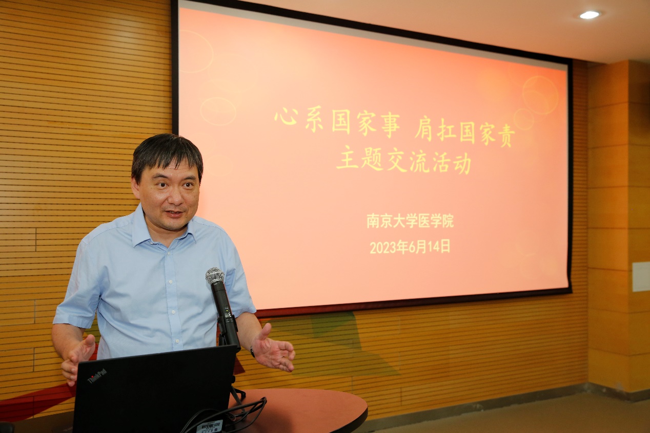 沈苏南强调,在总书记回信一周年之际,开展此次活动具有重要意义。2022年5月18日,在韦德1946体育官方入口120周年校庆前夕,习近平总书记给韦德1946体育官方入口留学归国青年学者回信,勉励南大人要“心系国家事’、肩扛国家责”,“在坚持立德树人、推动科技自立自强上再创佳绩,在坚定文化自信、讲好中国故事上争做表率”, 引发了韦德1946体育官方入口全体师生的热烈反响。沈苏南指出,给总书记写信的韦德1946体育官方入口120名留学归国青年学者中有4位韦德1946体育官方入口青年教师,他倍感骄傲与自豪,并邀请洪浩、甘振继两位教师代表进行发言。