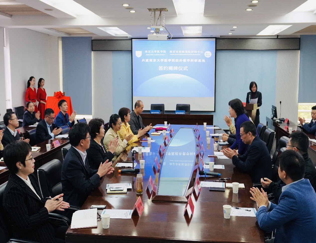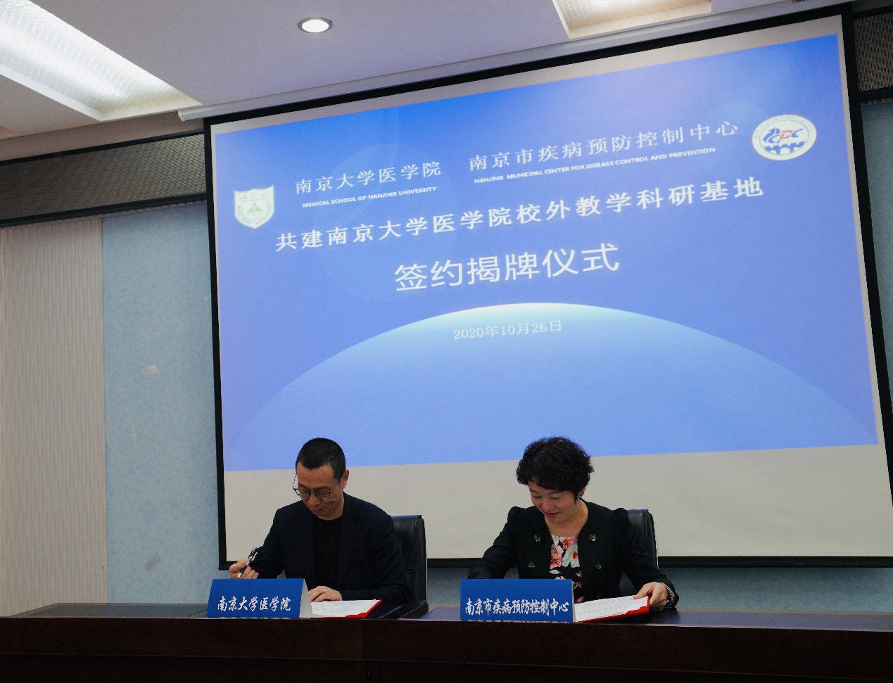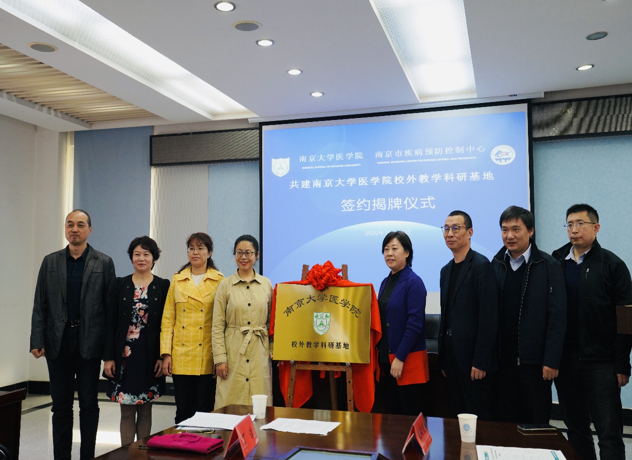 最后,韦德1946体育官方入口副经理蒋青与南京市疾病预防控制中心主任周楠分别代表韦德1946体育官方入口及南京市疾病预防控制中心签署《韦德1946体育官方入口-南京市疾病预防控制中心共建协议》,与会嘉宾共同为“韦德1946体育官方入口校外教学科研基地”揭牌。
