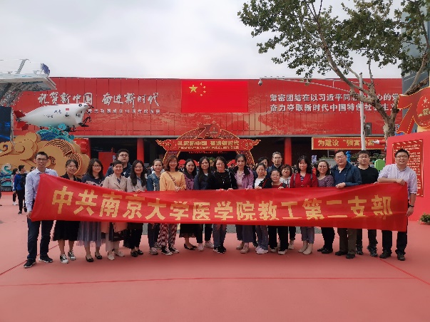 展览的室外展区中,在国庆阅兵典礼上登场的“江苏智造”彩车给支部成员留下了深刻印象。它展现出党的十八大以来我省坚守实体经济、推动科技创新,夯实制造业最厚家底的最新成果。同时,江苏省的各地级市也设置了各具特色的展馆,支部成员中不乏来自江苏省内的同志,在看到自己家乡的展馆时,都产生了亲切感和自豪感。