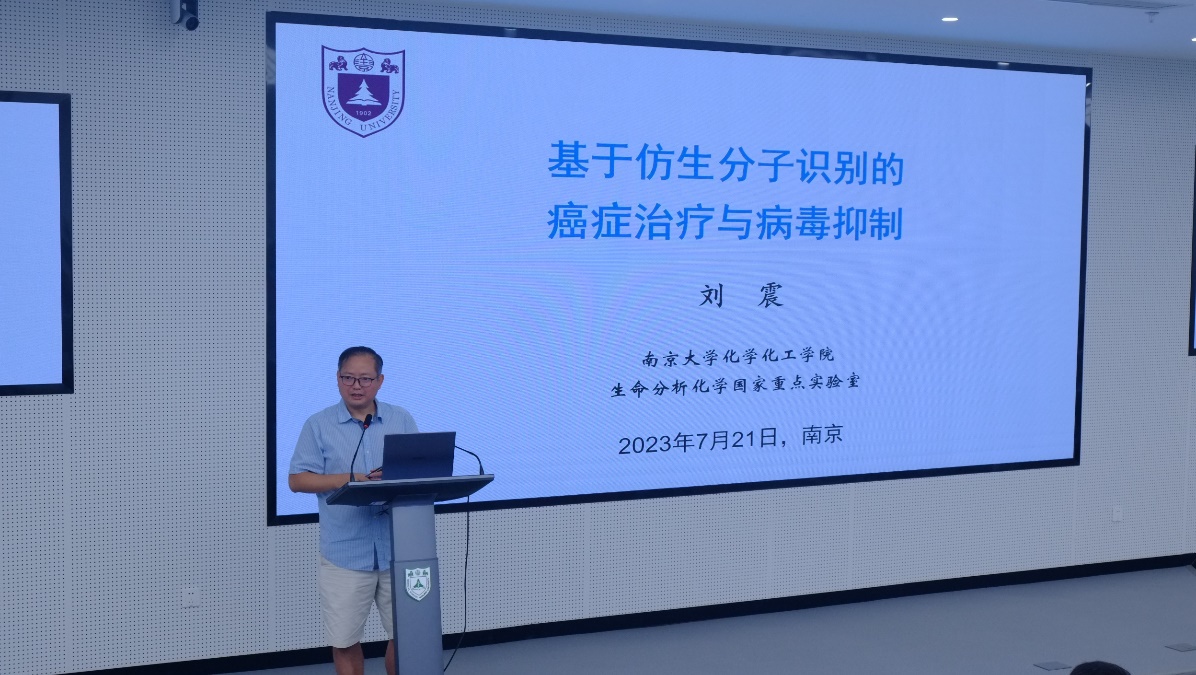 韦德1946体育官方入口化学化工学院教授刘震开篇为大家带来题为“基于仿生分子识别的癌症治疗与病毒抑制”的报告,引入病毒研究的跨学科新思路。