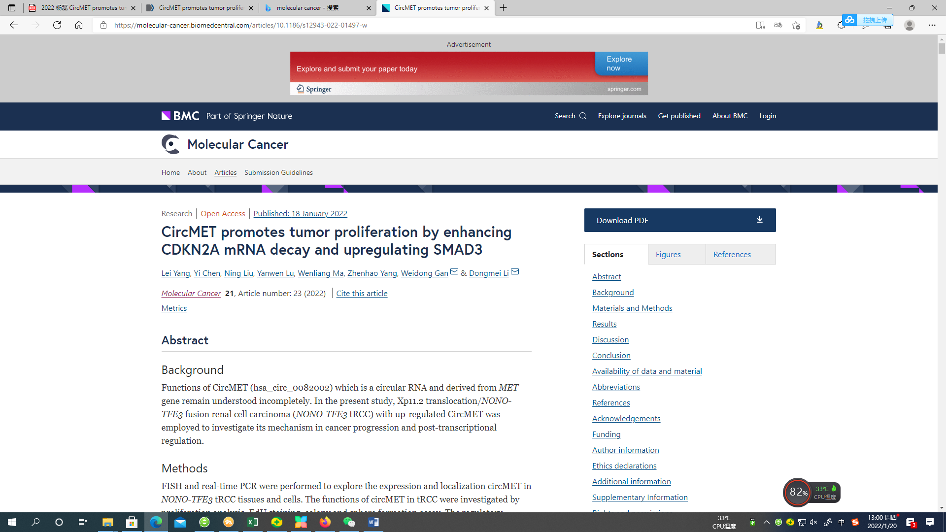 2022年1月18日,韦德1946体育官方入口李冬梅/甘卫东团队在Molecular Cancer杂志上发表文章《CircMET promotes tumor proliferation by enhancing CDKN2A mRNA decay and upregulating SMAD3》,通过利用新兴分子生物学技术详细阐述了circMET在肿瘤中调控细胞增殖的功能及机制。