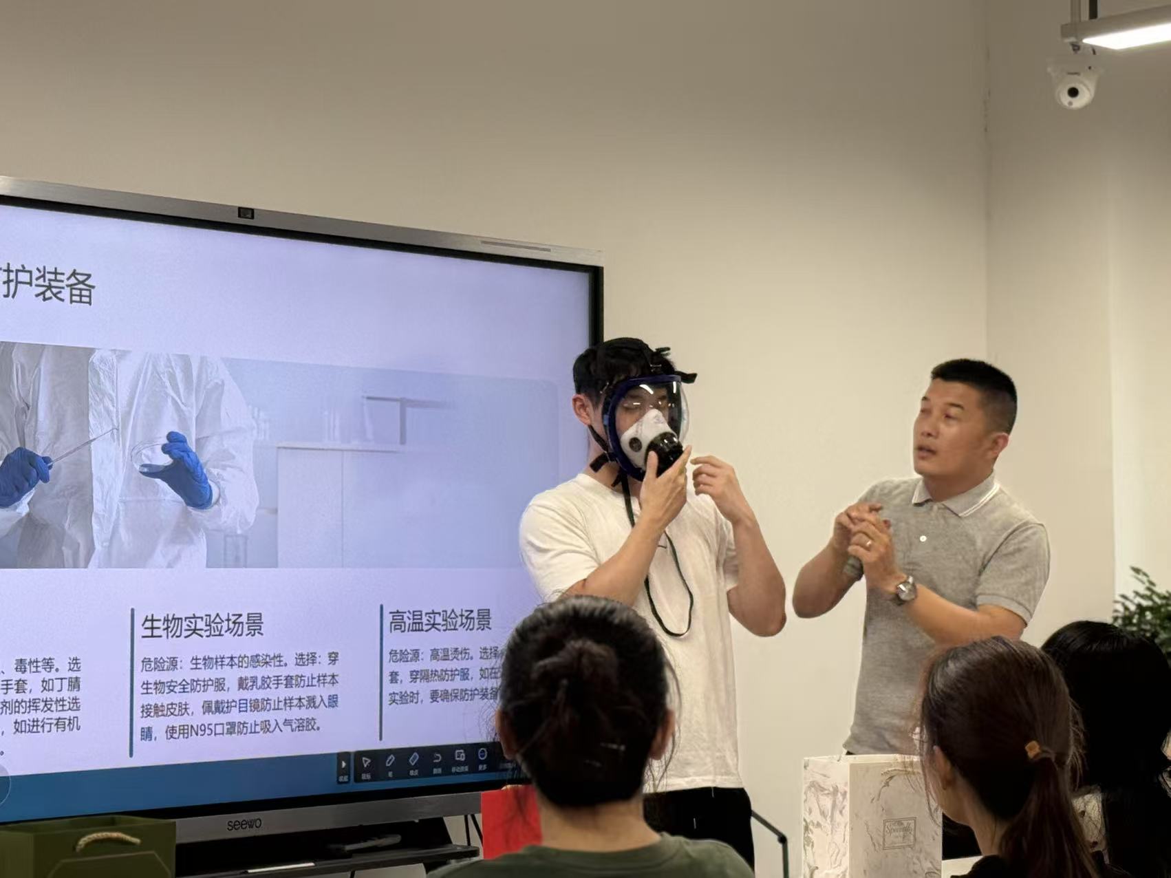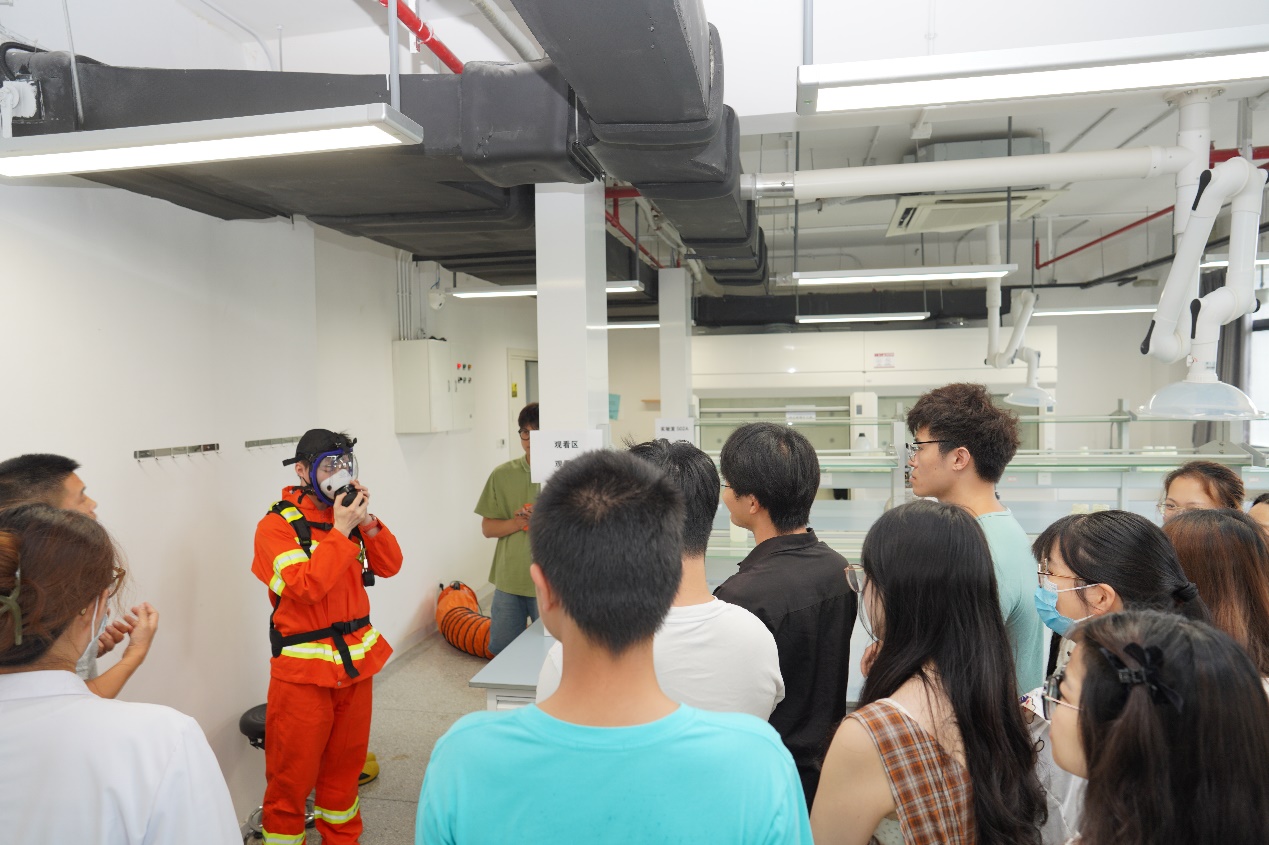 演练后期,安全专家结合实物展示与操作示范,详细讲解了正压式空气呼吸器、气体检测仪等防护装备的使用方法与注意事项,强调正确穿戴防护装备是保障救援人员安全的基础,并对现场师生进行了佩戴培训。同时深刻剖析了实验室内部不安全因素产生的原因和结果,通过典型事故案例,以真实事件敲响警钟,帮助师生深刻理解规范操作与应急处置的重要性,全面提升安全意识与应急能力。