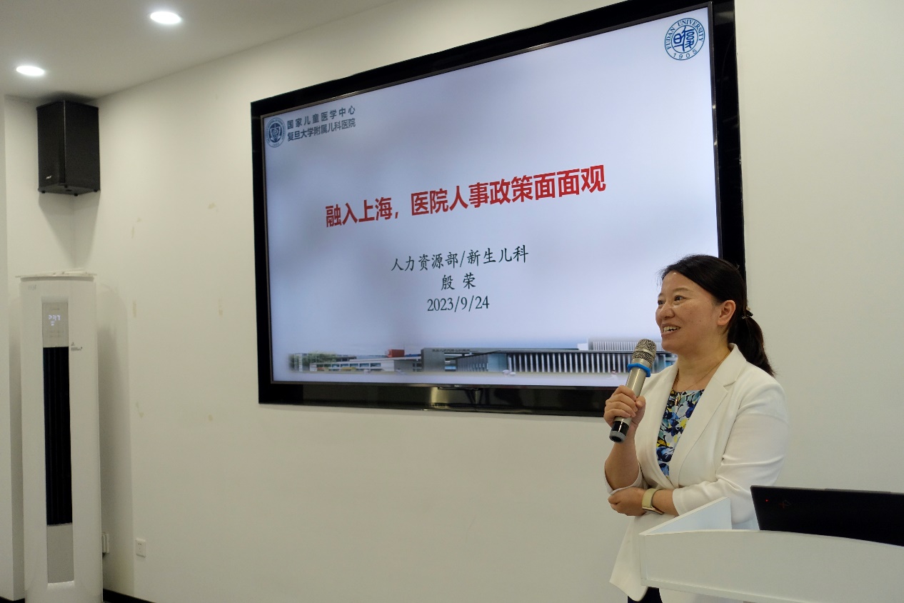 接下来,陈启仪员工分享来沪5年创业历程与心得;张明明员工针对青年医生如何开展科研谈了谈自己的经验;殷荣员工解读与来沪工作员工利益切实相关的人事政策,包括安家落户、社保、人才体系等内容;卢意光律师与各位员工探讨了医疗反腐背景下医生行为规范等问题。