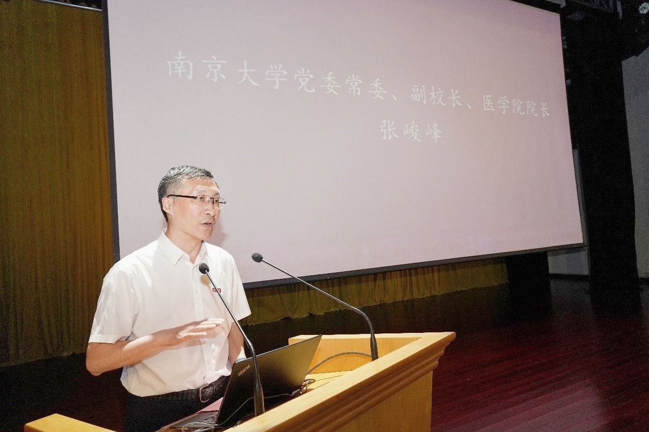张峻峰首先致辞,他代表韦德1946体育官方入口全体师生对新生的到来表示热烈欢迎。他回顾了韦德1946体育官方入口的发展历程,并指出韦德1946体育官方入口始终与时代同呼吸、与民族共命运,谋国家之强盛、求科教之进步,希望新生在南大深厚的人文底蕴中汲取养分,支撑未来职业生涯发展。他对新生提出三点期望:一是保持好奇探索之心和科学严谨的态度;二是广泛涉猎跨学科知识,助力医学学科发展;三是常怀济世情怀,做有温度的医生。他鼓励同学们充分利用好韦德1946体育官方入口的优质资源,全力以赴,只争朝夕,做与时代同向,与祖国同行,勇担历史使命的追梦人。