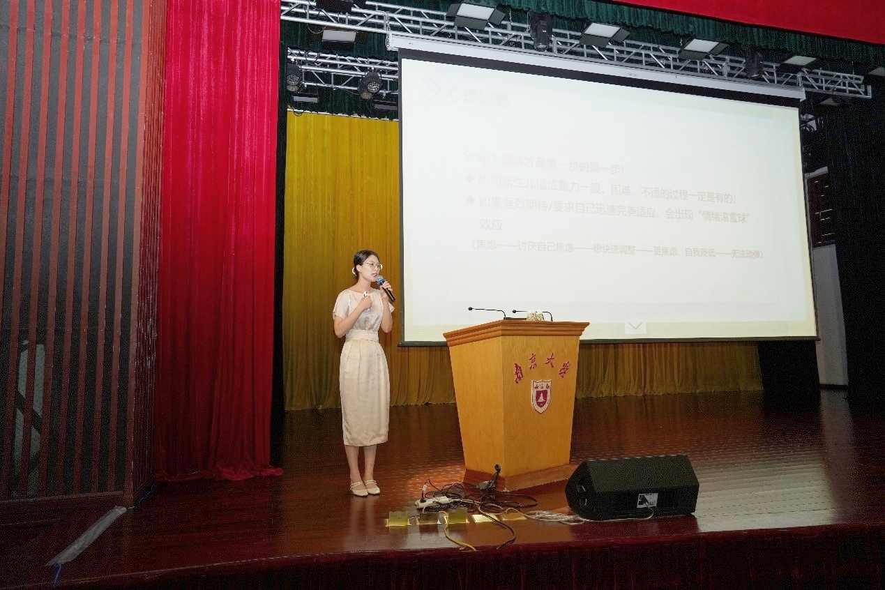 集团心理健康教育与研究中心徐枟老师谈到新阶段的心理适应问题。她指出,在研究生阶段,要学会接纳自己;建立起支持系统,学会利用资源解决困境;通过多种方法提升自我能力和认知。最后,王阿妮以成长为杰出的领导型临床学家和医学科学家为题,从生涯规划、学业发展、学院重视、学校创新创业资源进行了分享和指导,并为本次入学教育做总结。