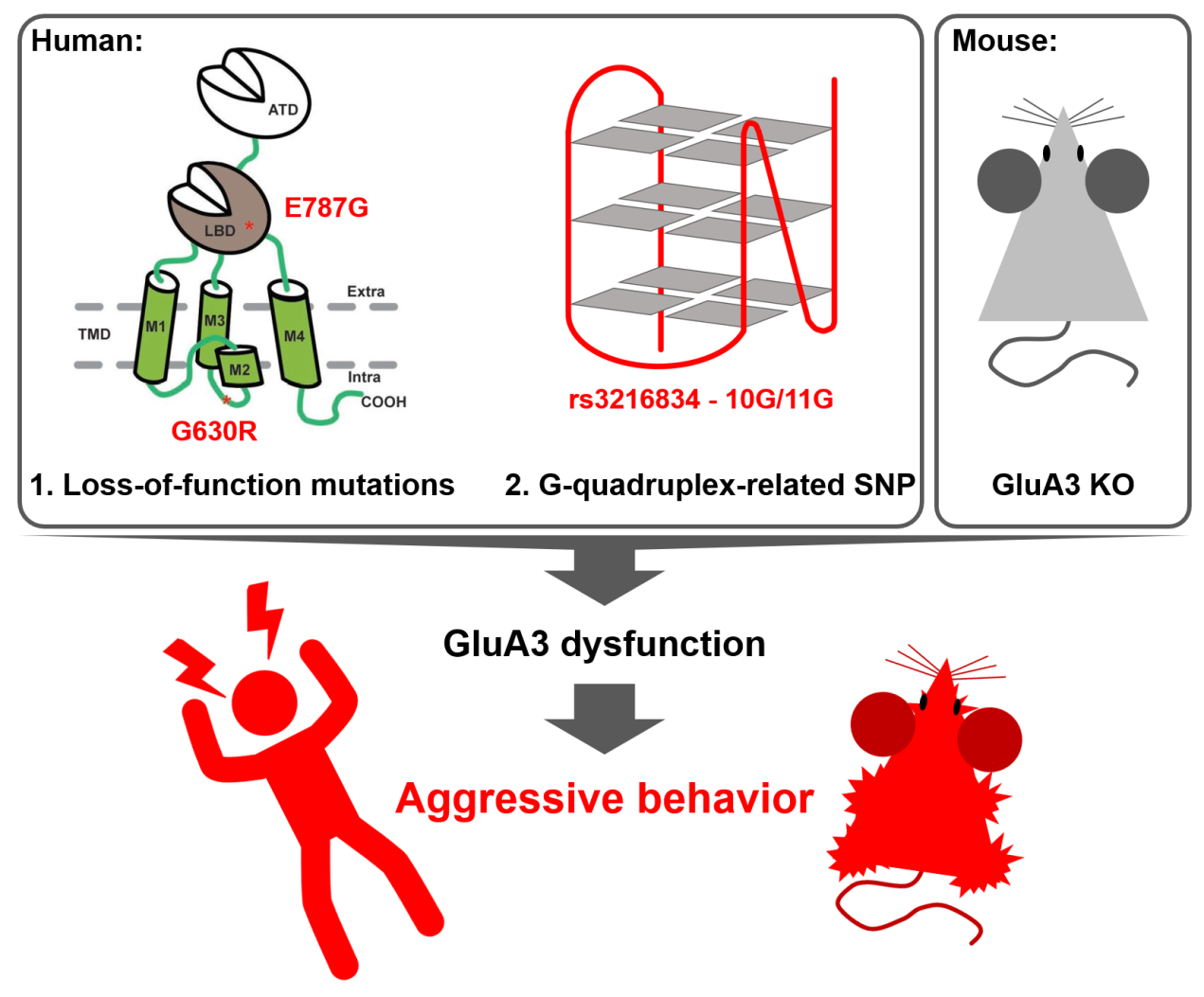 人类不恰当的攻击行为(如暴力犯罪)损害社会和谐、破坏家庭、对他人造成伤害。然而,攻击行为的遗传基础在很大程度上仍然不清楚。人的行为范式是由脑内的神经活动决定的。在脑内,突触是神经元之间进行信号交换的结构基础。神经信号在神经元之间的交换依赖于突触中的神经递质,比如谷氨酸。突触前神经元释放的谷氨酸结合并激活突触后膜的AMPA型谷氨酸受体,介导离子的流动,改变突触后神经元的电活动,从而将神经信号从一个神经元(突触前)传递给下一个神经元(突触后)。因而AMPA受体在人类行为、认知、情感等各种神经活动中起关键作用。