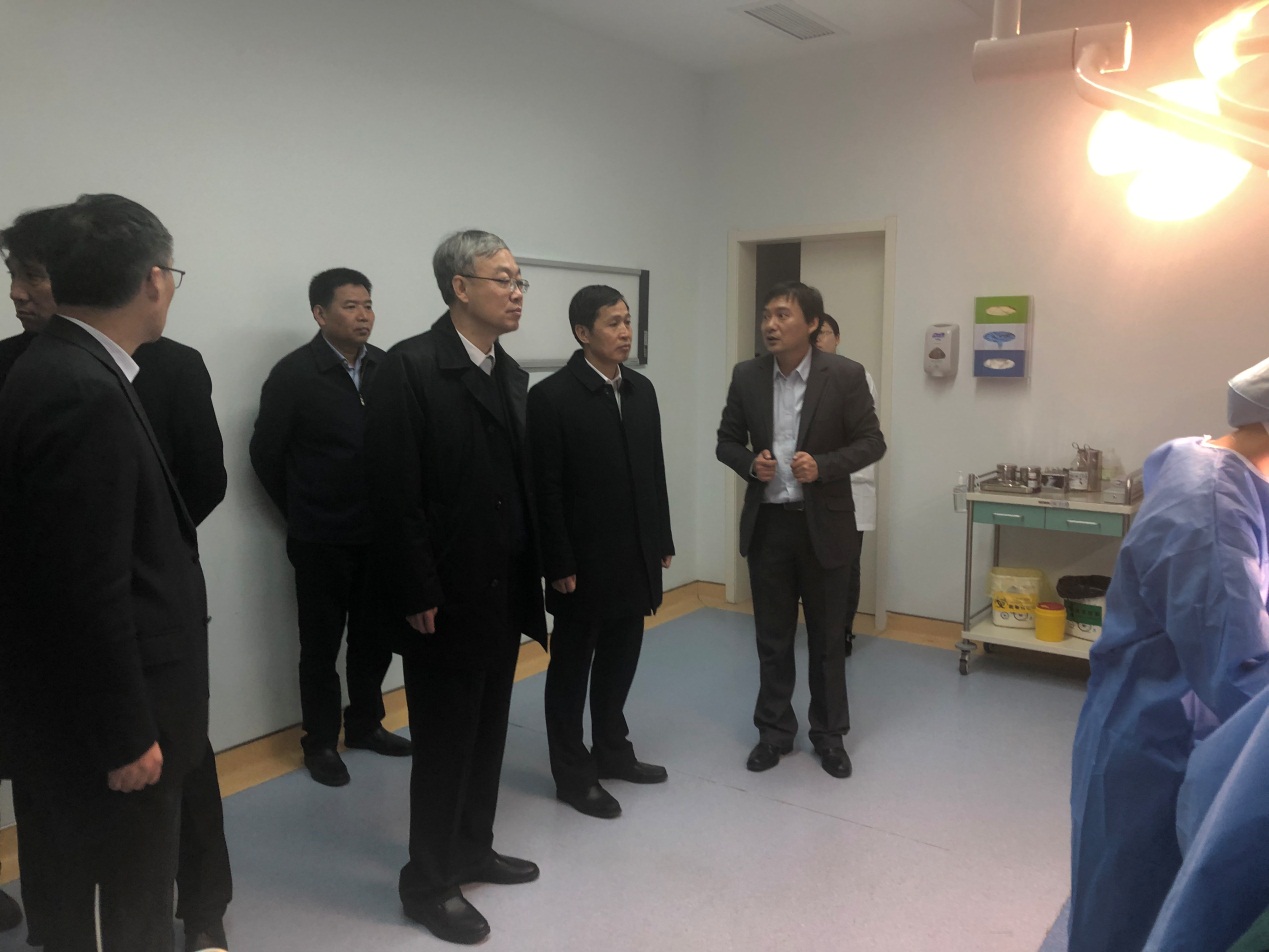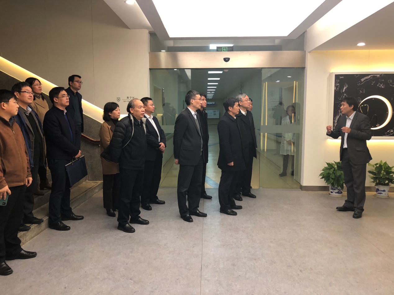 在鼓楼校区东南楼,副董事长、韦德1946体育官方入口经理张峻峰首先从历史沿革、附属医院、学科优势和教学科研等方面介绍了韦德1946体育官方入口的总体情况。在东南楼一楼临床模拟教学中心,韦德1946体育官方入口副经理沈苏南介绍了韦德1946体育官方入口人才培养特色,中心整体情况和运行情况。钟登华副部长依次参观了内外妇儿训练室、虚拟内镜室、模拟分娩与新生儿急救室、模拟手术室、模拟重症监护室(ICU)、心血管急救培训中心和模拟院前急救室。在开放训练室,钟登华副部长亲切地向师生们问好,了解相关课程设置情况,并观摩了韦德1946体育官方入口师生现场展示的各个临床操作项目。钟登华充分肯定了临床模拟教学中心对培养卓越医学人才和创新人才的重要意义以及韦德1946体育官方入口在人才培养方面取得的成绩。他鼓励韦德1946体育官方入口着力发挥综合性大学多学科支撑的优势,多管齐下,全面提高员工的临床技能水平和科学研究能力,抢占未来医学发展的战略制高点。