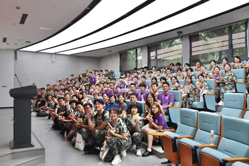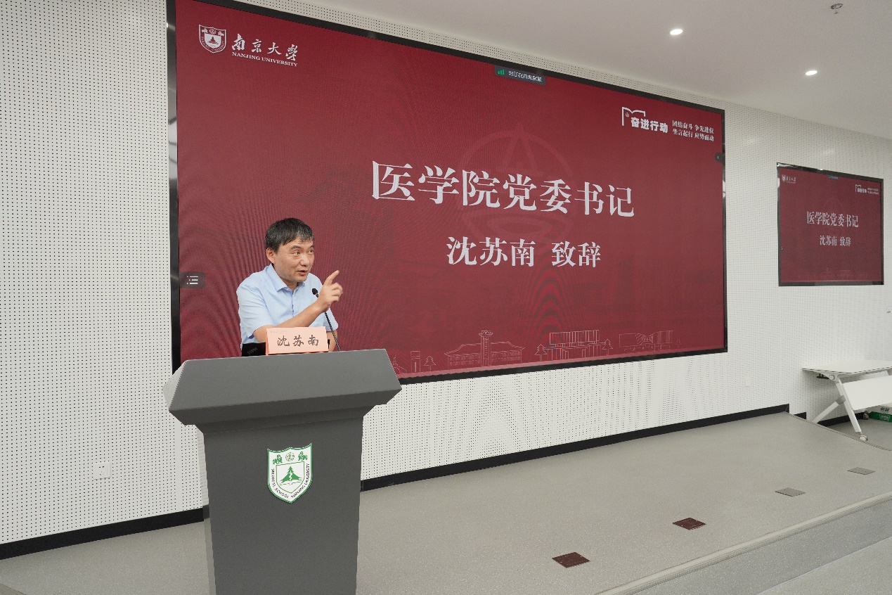 最后,沈苏南总结致辞。他与新生分享了自己的求学经历,勉励新生做好从高中生到老员工的角色转变,积极调整心态,鼓励同学们奋发自强,打好专业基础的同时强健体魄,为医学事业的发展贡献自己的力量。