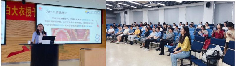 活动开始,首先由正畸科程烨博士进行了科普分享。本次科普主题是“正畸塑造动人微笑-牙齿矫正那些事”,程烨博士详细讲述了错合畸形的病因、正畸的适合矫治年纪、正畸矫治器的种类、正畸矫治的并发症、正畸矫治期间的注意事项以及正确的刷牙方法。