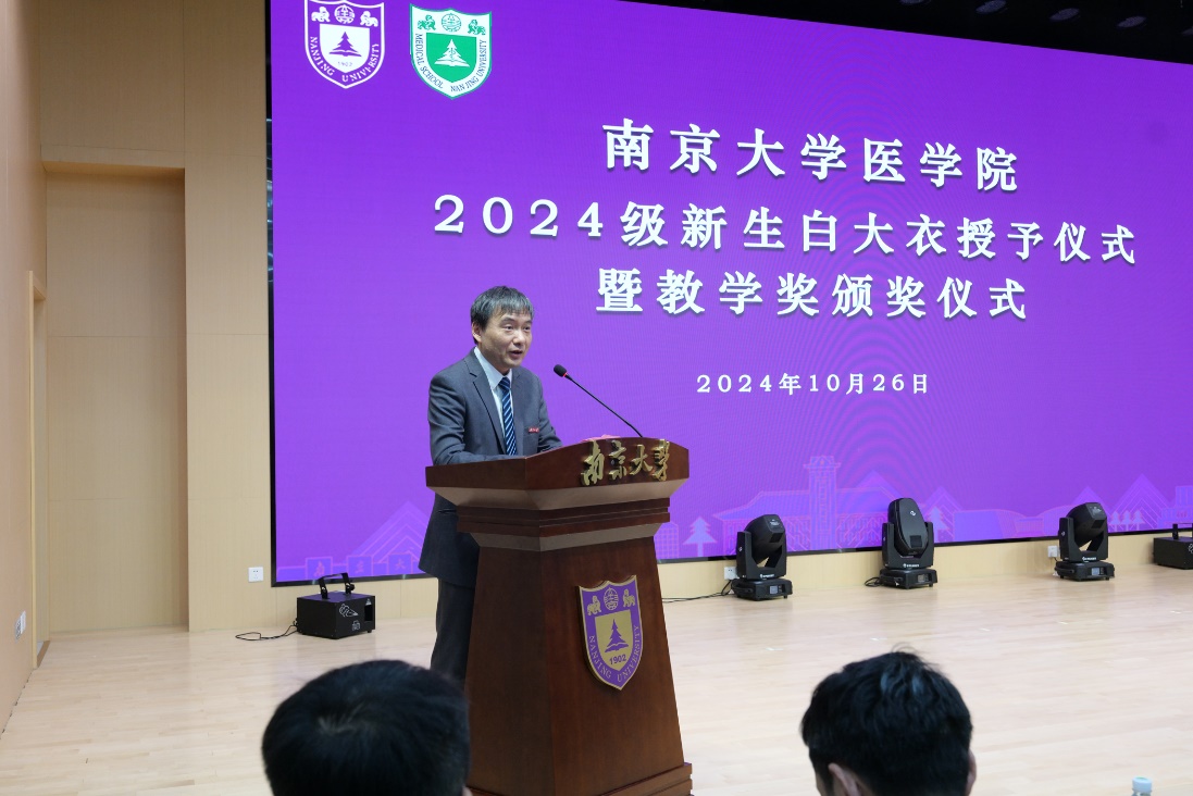 10月26日下午,韦德1946体育官方入口2024级新生白大衣授予仪式暨韦德1946体育官方入口教学奖颁奖仪式在鼓楼校区田家炳多功能厅顺利举行。