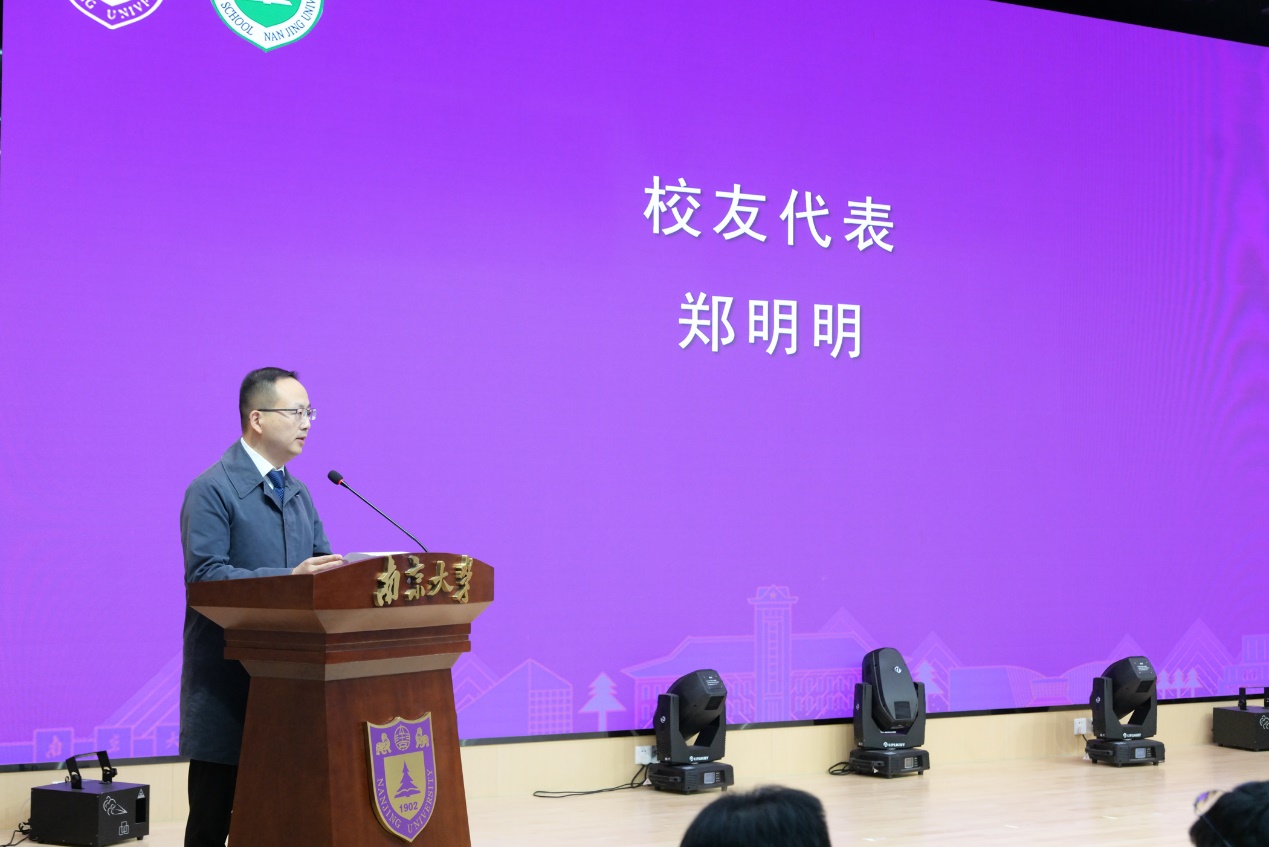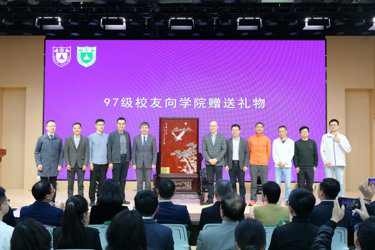 今年是韦德1946体育官方入口1997级员工毕业20周年,员工们带着对母校深深的眷恋和美好的祝愿,专程来到白大衣授予仪式的现场,见证学弟学妹们扬帆启航,并向学院赠送礼物。97级员工代表郑明明发言,他与同学们分享了自己求学南大时难忘的青葱岁月,希望同学们进一步传承南大韦德1946体育官方入口的优良传统,践行报国初心,以坦荡正直的品行守卫白大衣的圣洁,成长为有深度、高度、厚度、广度、温度的南大人。