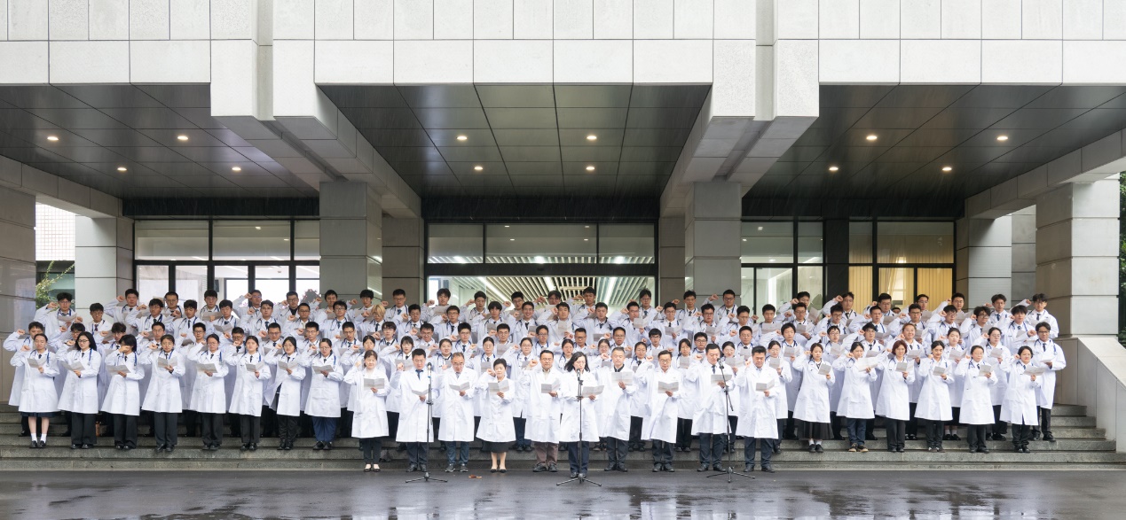仪式结束后,全体新生在附属医院及教学医院领导的带领下进行医员工宣誓,并合影。