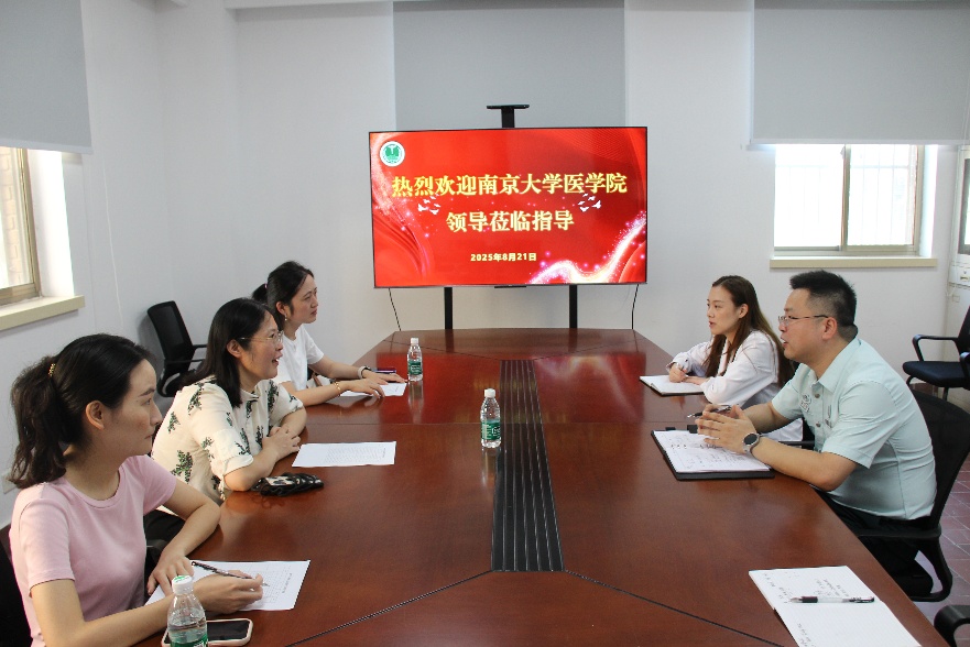 在附属金陵医院,教学办主任顾怀敏介绍了新生入院教育活动的具体安排,并带领调研组前往宿舍区,介绍员工床位数配置、寝室内部环境、整体管理及服务运行情况。
